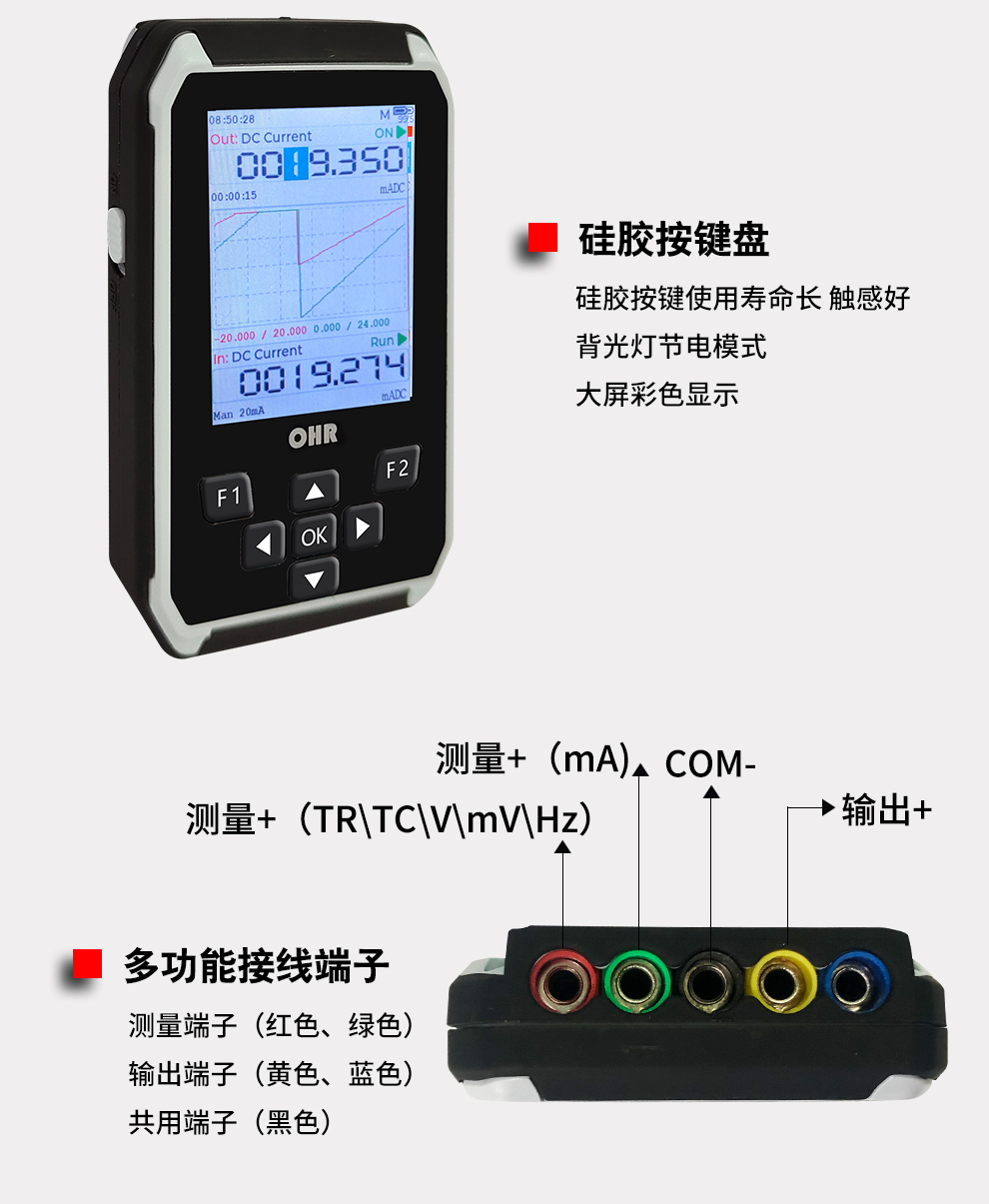 OHR-C00多功能校驗(yàn)儀/信號(hào)發(fā)生器是帶測(cè)量與輸出的過(guò)程信號(hào)校驗(yàn)儀。產(chǎn)品具有高精度、信號(hào)任意切換、續(xù)航能力強(qiáng)、大彩屏占比、小巧可裝口袋等特點(diǎn),產(chǎn)品功能設(shè)置簡(jiǎn)單易用,為使用者帶來(lái)了更便捷的體驗(yàn)。